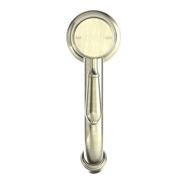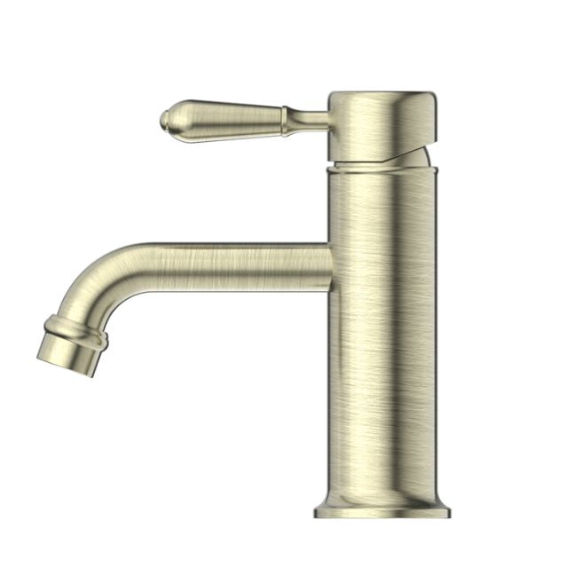 Nero York Straight Basin Mixer With Metal Lever Aged Brass