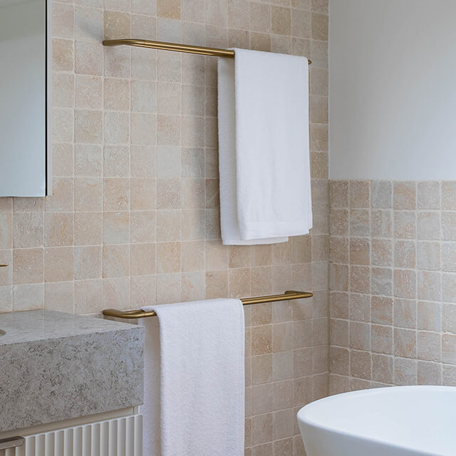 The Caroma Contura II Towel Rail in Brushed Brass offers a stylish and functional solution for organising your towels. With its generous 820mm length, it can hold multiple towels at once, saving you time and space. Its brushed brass finish adds a touch of luxury to your bathroom.