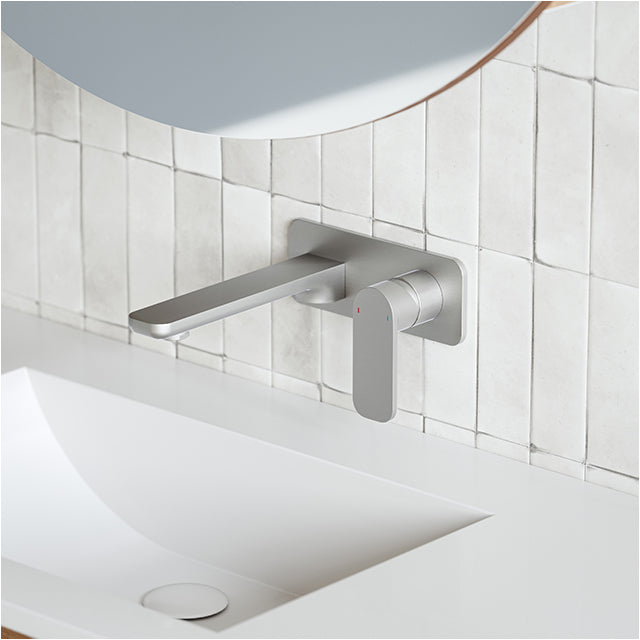 Caroma Luna Lead Free Wall Basin/Bath Mixer Brushed Nickel