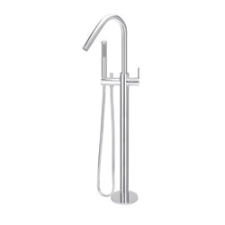 - Designed with practicality in mind, the Meir Chrome freestanding round bath mixer with hand shower features a full 360-degree swivel spout motion