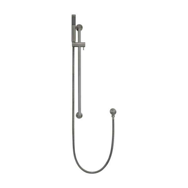 - Gorgeous shower on rail with removable hand shower in Meir's Shadow finish